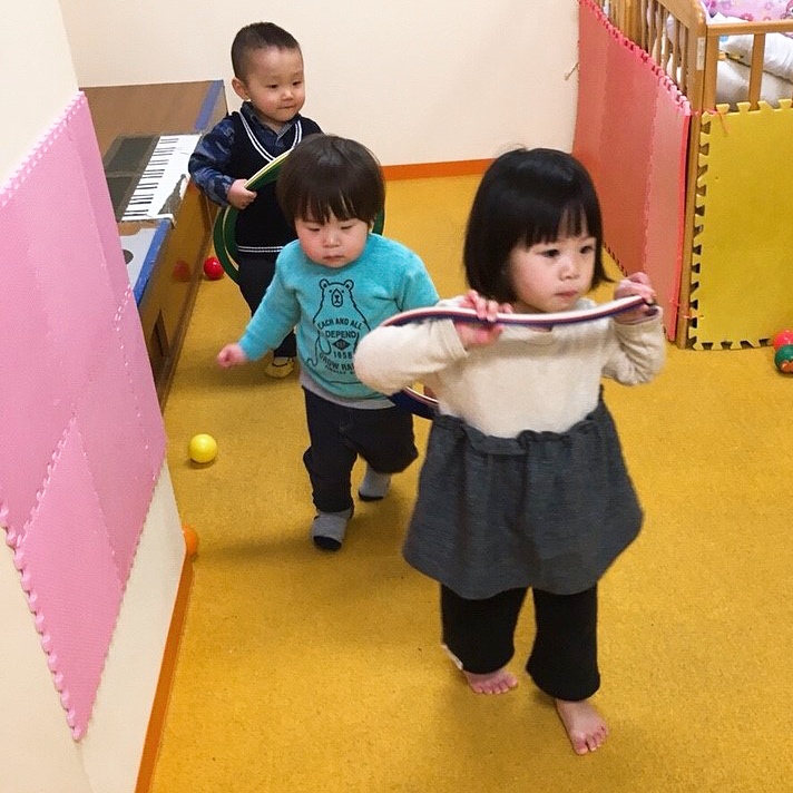 りんご組(1歳児)のお友達の室内遊びの様子をお伝えします☆